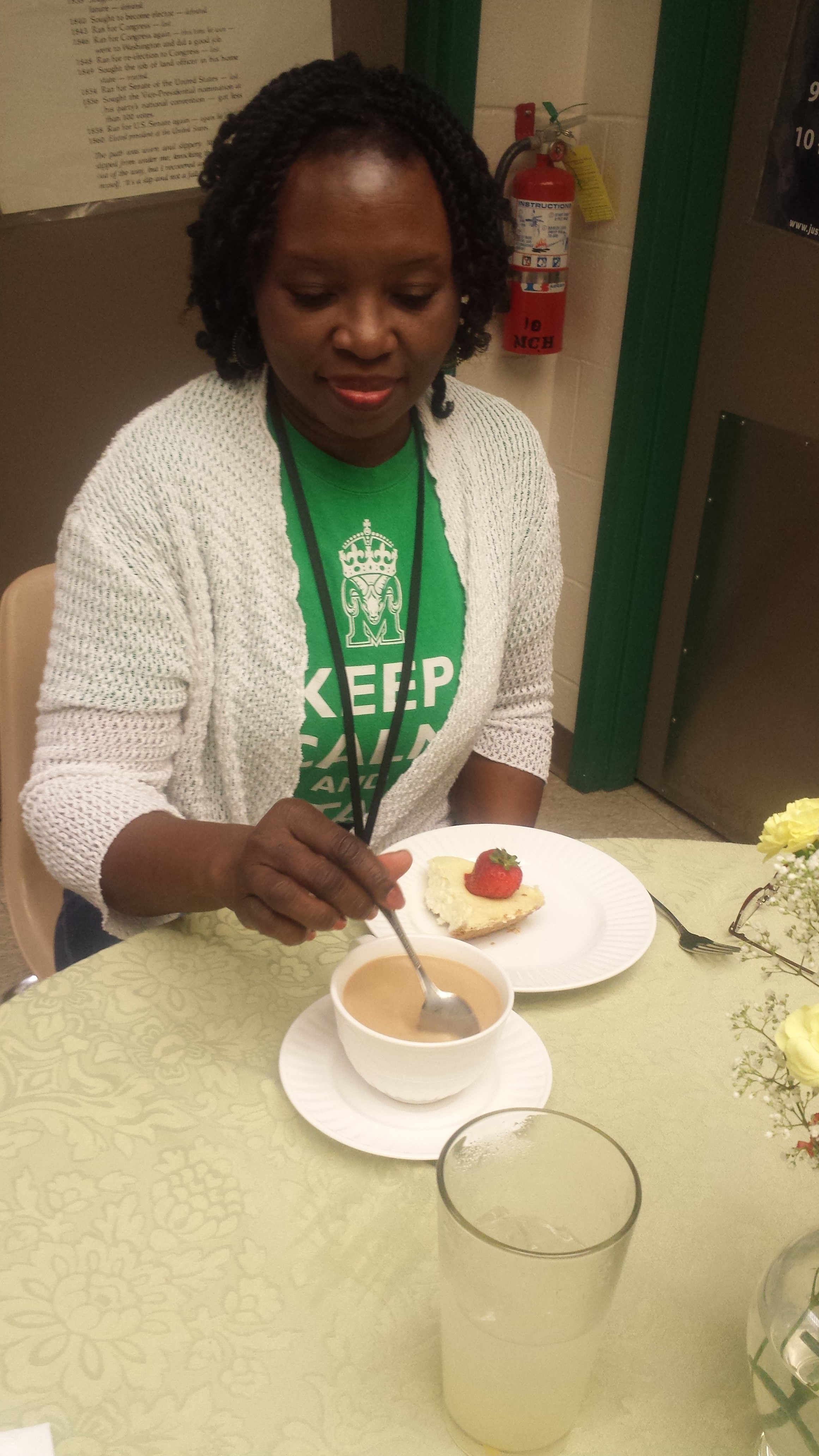 Estefenia, Martha, and Vivian made the cheesecake, so I had to have that delicacy. They kept me company and made interesting conversations that caused me to laugh often. You made my day, ladies!